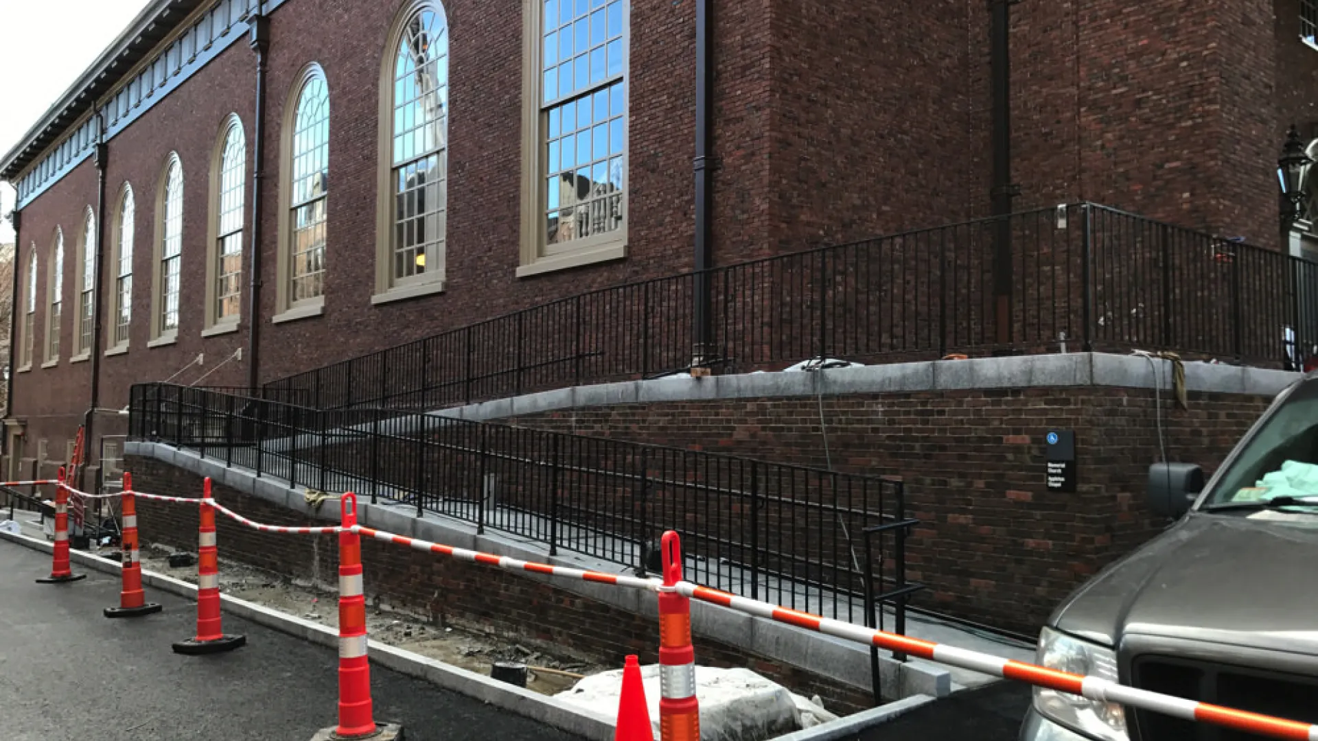The photographs shown here focus on the reconfiguration of the exterior to accommodate new accessibility structures, work that makes the church that much more open to the Harvard community as a whole, in its accustomed place, as of this week.