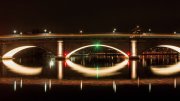 The Larz Anderson Bridge, finally renovated, spans the Charles River seamlessly again. An au courant addition: new lighting, seen from downriver.