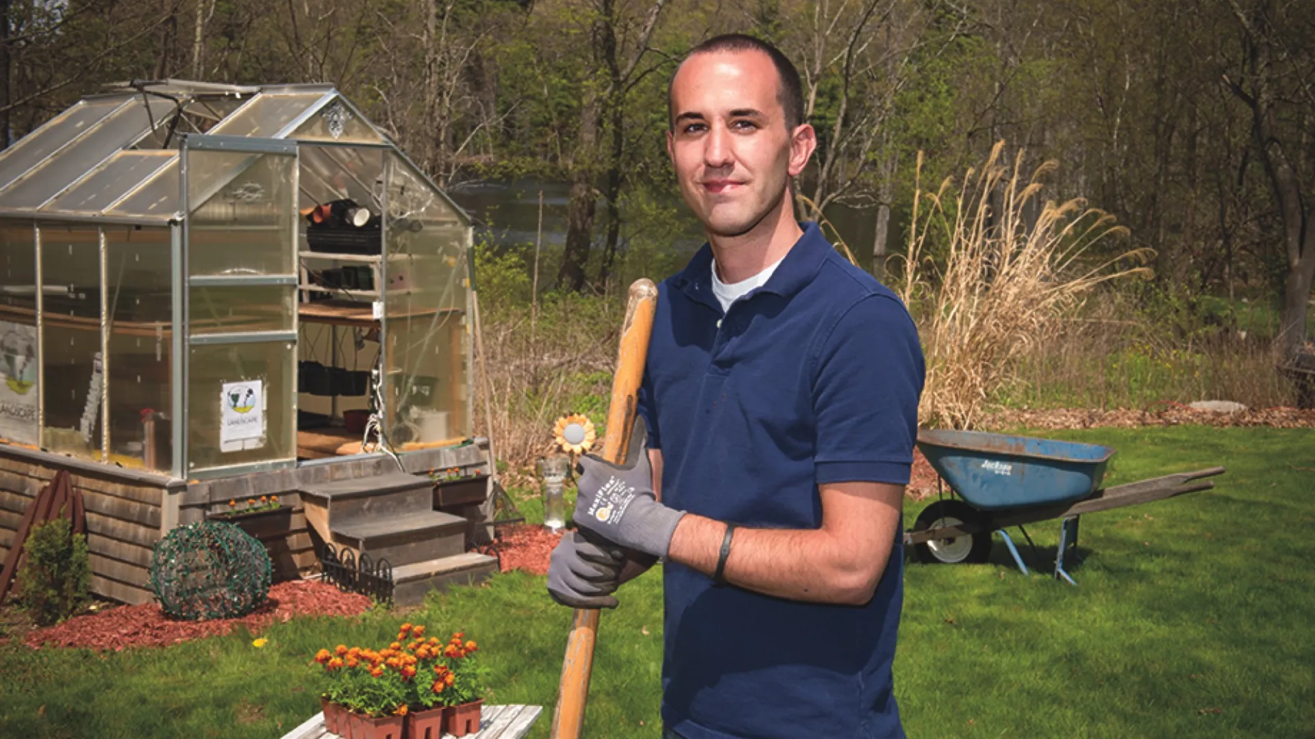 Andrew LeClerc in his home gardenPhotograph by Stu Rosner
