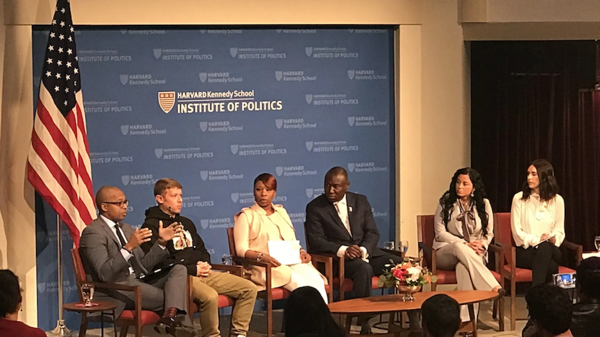 The JFK Jr. Forum discussion among McSpadden, her lawyers Crump and Jasmine Rand, and filmmaker Jason Pollock followed a screening of Pollock’s documentary Stranger Fruit. Three years in the making, the film is an investigation into Brown’s death that raises new evidence and questions about the bitterly contested facts of the case, addressing the confrontation between Brown and Darren Wilson, the officer who shot him; the physical evidence and testimony that emerged from the shooting; as well as an alleged strong-arm robbery that took place moments before it. The panelists, all of whom took part in the film, hope the project will lead to a reopening of the criminal case related to Brown’s death. (A few months after the shooting, a grand jury chose not to indict Wilson for criminal wrongdoing.) A protégé of filmmaker Michael Moore, Pollock was living in Los Angeles when Brown died. “And I decided to put my stuff in storage and basically move to Ferguson, because I was really, really mad,” he said. And as a white man, “I felt very alone being mad.” Eight months later, he met McSpadden and the two began working on the film together. “I’m hoping that it’ll change the hearts of people,” she said.