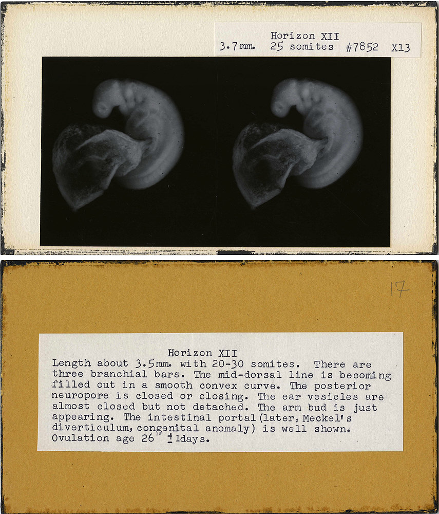 One of a set of stereoscopic slides showing a stage of embryonic development. When inserted into a viewer, the image pops out in 3D.