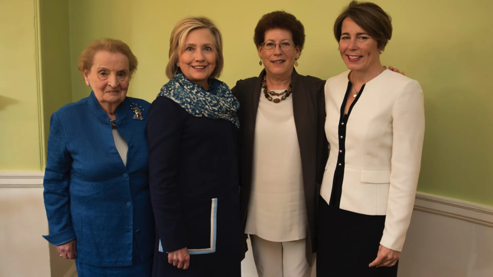 The presentation of the award followed a morning discussion about America’s role on the global stage among panelists Michèle Flournoy ’83, David Ignatius ’72, Harvard Kennedy School faculty member Meghan O’Sullivan, and Anne-Marie Slaughter, J.D. ’85, that was moderated by Nicholas Burns, Goodman Family professor of the practice of international relations. After Cohen’s introduction, former U.S. Secretary of State Madeleine Albright, LL.D. ’97, who received the Radcliffe Medal in 2001, delivered her own reflections on Clinton. She recalled their traveling the world together while she was Secretary of State and Clinton was First Lady, and Clinton’s lifelong role in expanding opportunities for women—the theme that echoed across the comments of all of the day’s speakers. “I didn’t ever think I was going to be Secretary of State because how could a woman possibly be Secretary of State?” Albright said. “And I now know that I would not have been Secretary of State if it hadn’t been for Hillary. And the reason I know that is because Bill Clinton said so, publicly”—prompting laugher from the audience.