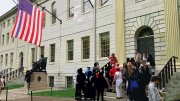 There is no single Harvard Tour; instead, there is an entire ecosystem of tour-giving, from official admissions tours for prospective students to a range of sightseeing tours. There are University-endorsed tours led by members of the undergraduate Crimson Key Society, but also privately owned tours that feed off Harvard parasitically: a tour led by a guy in Revolutionary War period costume; a tour with a 70-year-old man whom I’ve only heard referred to as “that guy.”