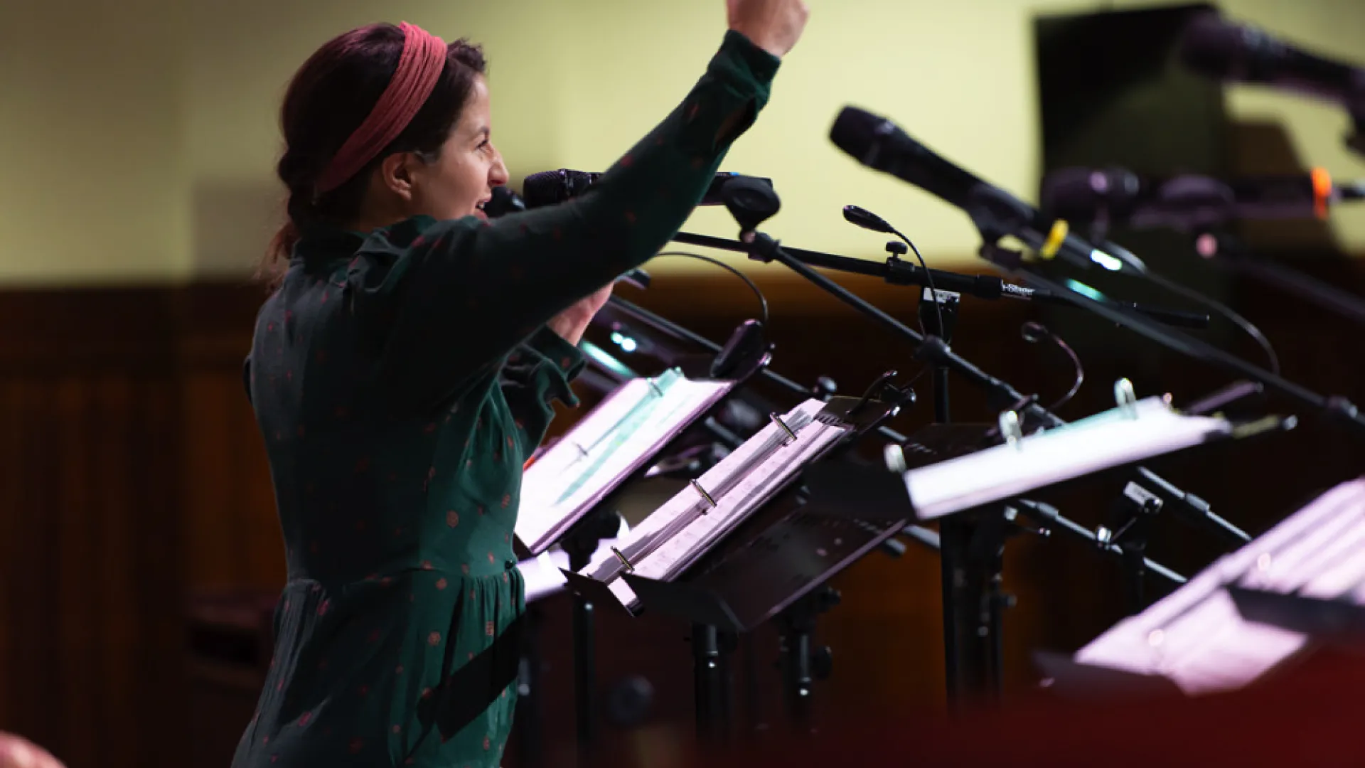 New York Times music critic Stephen Holden’s line about Shaina Taub—that she is a gravitational force “around whom others cluster like filings to a magnet”—came powerfully to mind on Monday night inside the Radcliffe Institute’s Knafel Center, where the singer-songwriter (and actor-dancer-musician-dramatist) held the stage for nearly three hours. As part of a celebration for the seventy-fifth anniversary of the Schlesinger Library on the History of Women in America (which is closed now for renovations through Tuesday, November 6), Taub and eight other singers, all women, performed a dozen songs from her musical-in-progress about the American Suffragist movement.