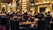 OAK Long Bar + Kitchen’s plush digs feature upholstered leather bar seats and comfortable nooks.
