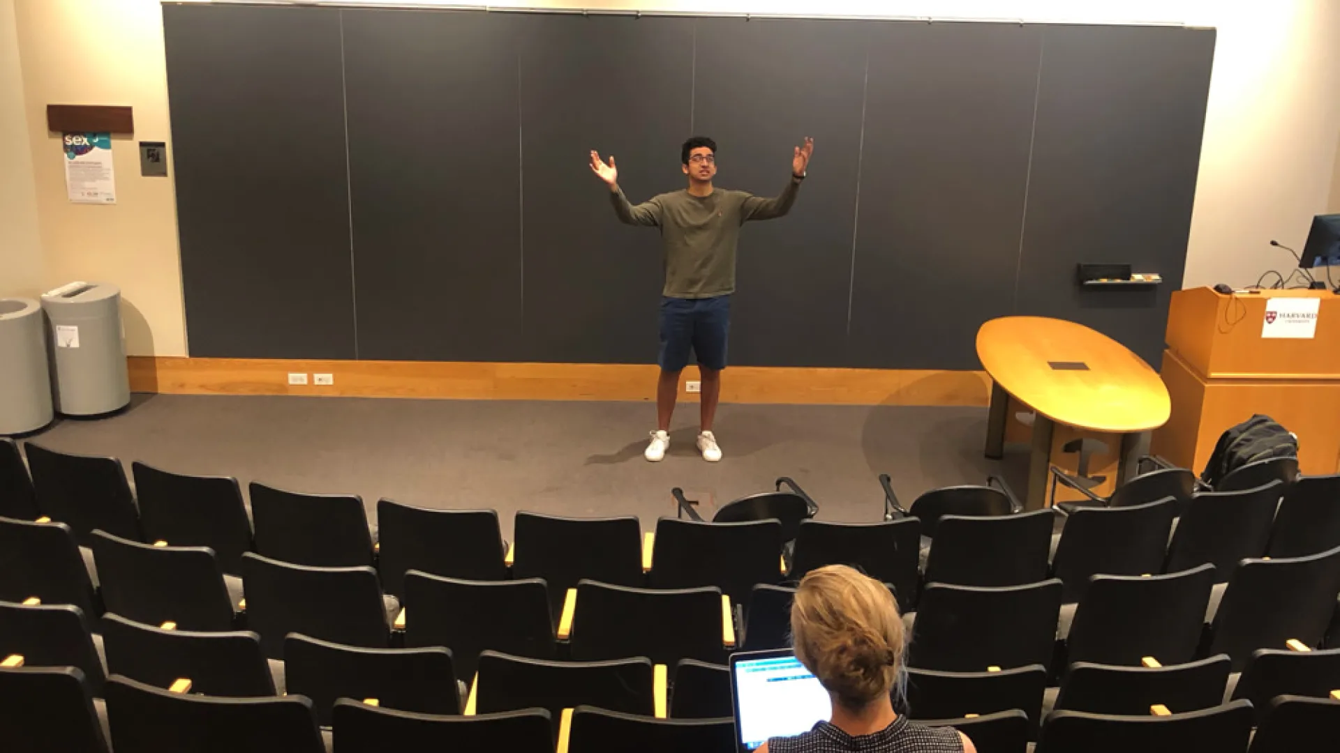 As they perform, Erika Bailey, one of the two coaches for this year’s speakers, takes notes on her laptop, pausing to clap during major applause points. When they’re done, it’s time for minor adjustments for which Bailey—a lecturer on Theater, Dance, and Media and professional voice coach for the American Repertory Theater—is uniquely attuned.