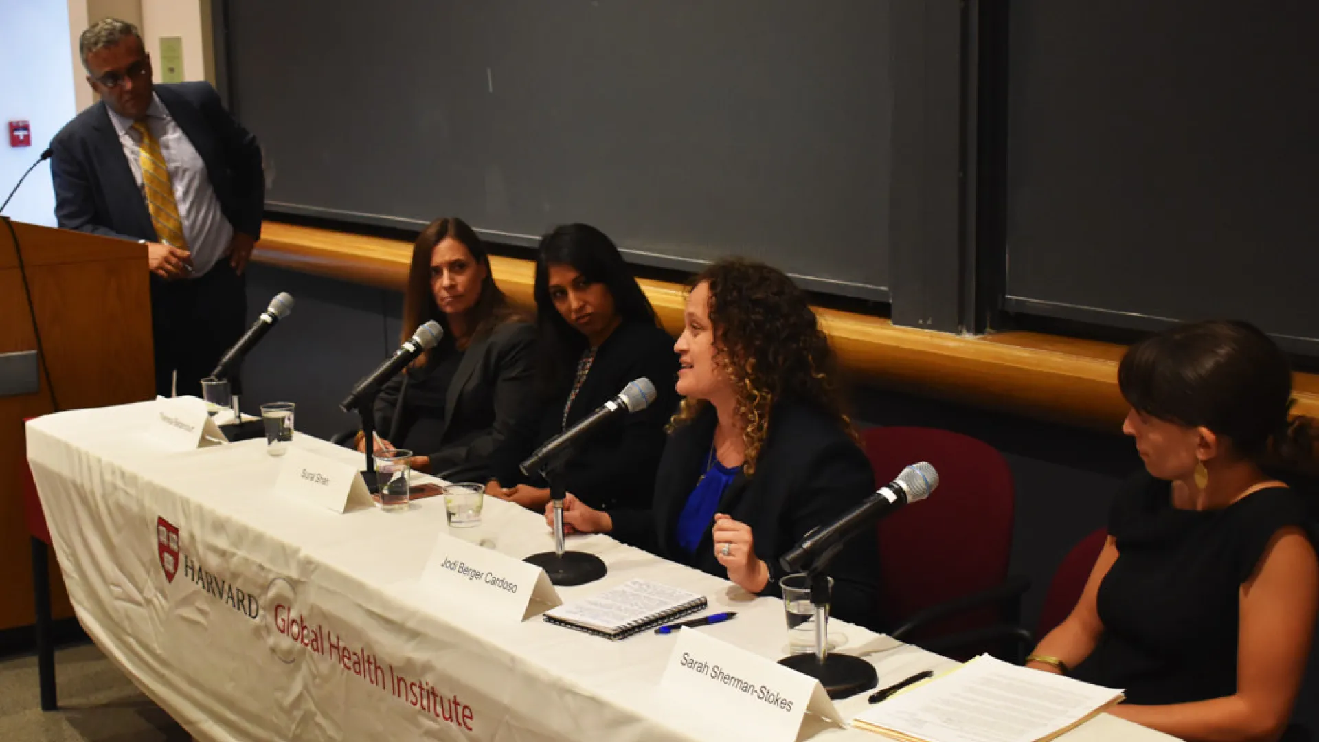 Li professor of global health and professor of medicine Ashish Jha, HGHI’s faculty director, opened the panel with comments on understanding the border crisis in a global-health context, and how Americans should think about their obligations to refugees and displaced people. Displacement “is not voluntarily leaving to go to a new place; it is often about physically, forcibly being pushed,” he said. “There are about 70 million people who are displaced in the world today, the highest number we’ve seen since the end of World War II. These are very important times....Maintaining the health of a displaced population is a difficult business,” he continued. “We have obligations to do it, but it is not just like taking care of any other population. They have very specific needs, challenges. It is our obligation to figure out how to do it.”