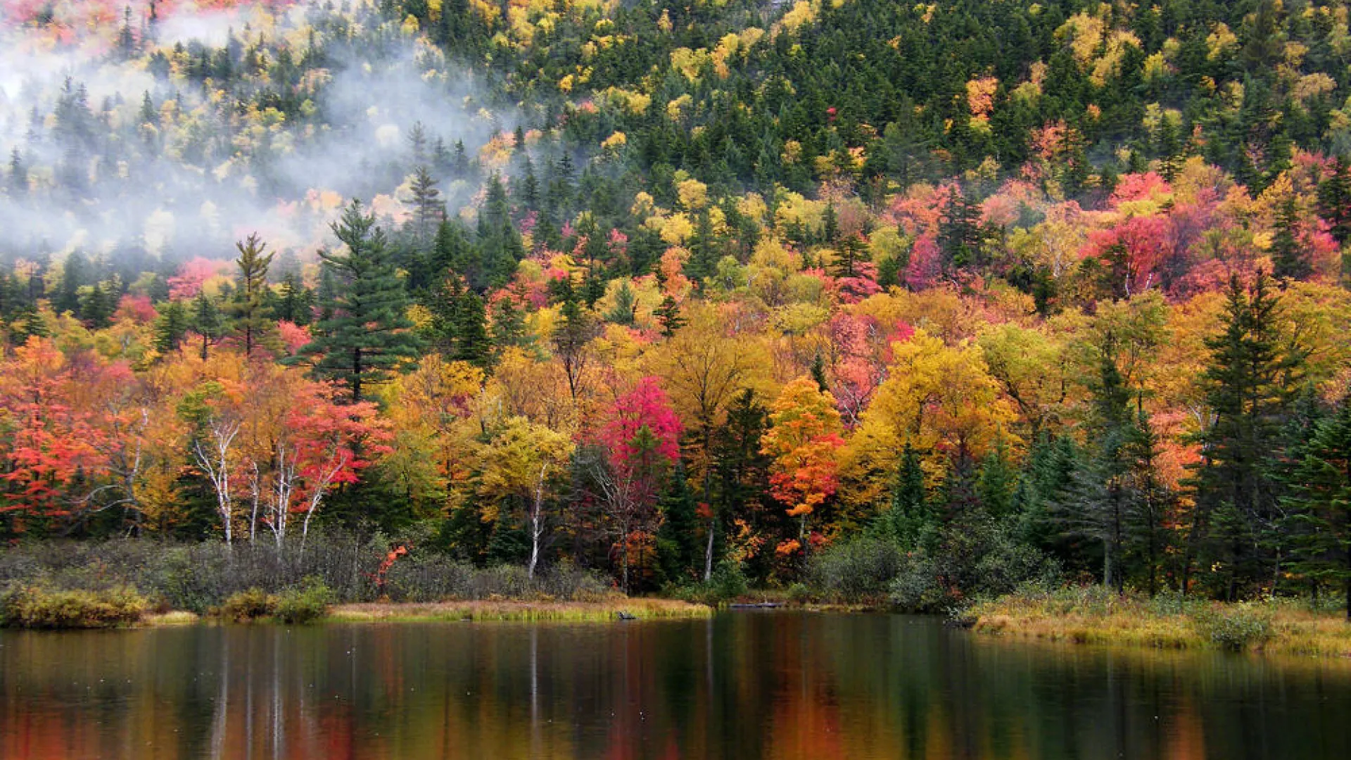 New England falls are special in part because this region’s native tree species naturally display brighter colors than trees in similar deciduous climates around the world, Primack says: “Eastern North American maples show more red color than maples from Europe and Asia.” Why might that be? The theory is that “New England has one of the most variable temperate climates of anywhere in the world.” Seasonal weather varies year to year here more than it does on the other side of the Atlantic, he explains. “In the fall, it’s unpredictable when the first frost is coming….Plants react to that by being cautious.” They’ve evolved to break down chlorophyll early, undergo senescence gradually, and produce more pigments.