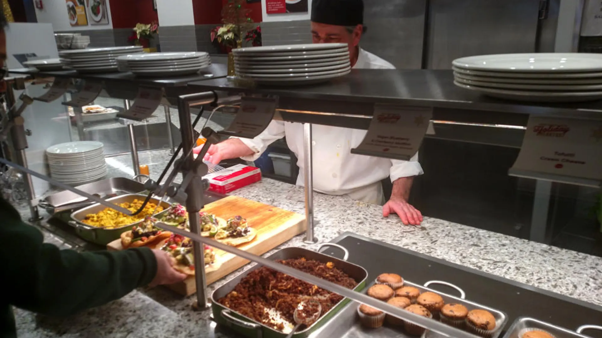 The Campus Services holiday breakfast—an annual fête in Annenberg Hall that brings together dining-hall workers, facilities and grounds staff, and many others (including staff members of this magazine) in a lovely, relaxed, social setting—upped its game this year. Alongside the traditional eggs, lox and bagels, and more, a “plant-forward station” offered quinoa “hash” and a plant-based “bacon.” Another harbinger of things to come, consistent with emerging thinking about how to tame the climate-change impact of agriculture and food production, and dining services’ earlier response to changing student requests.