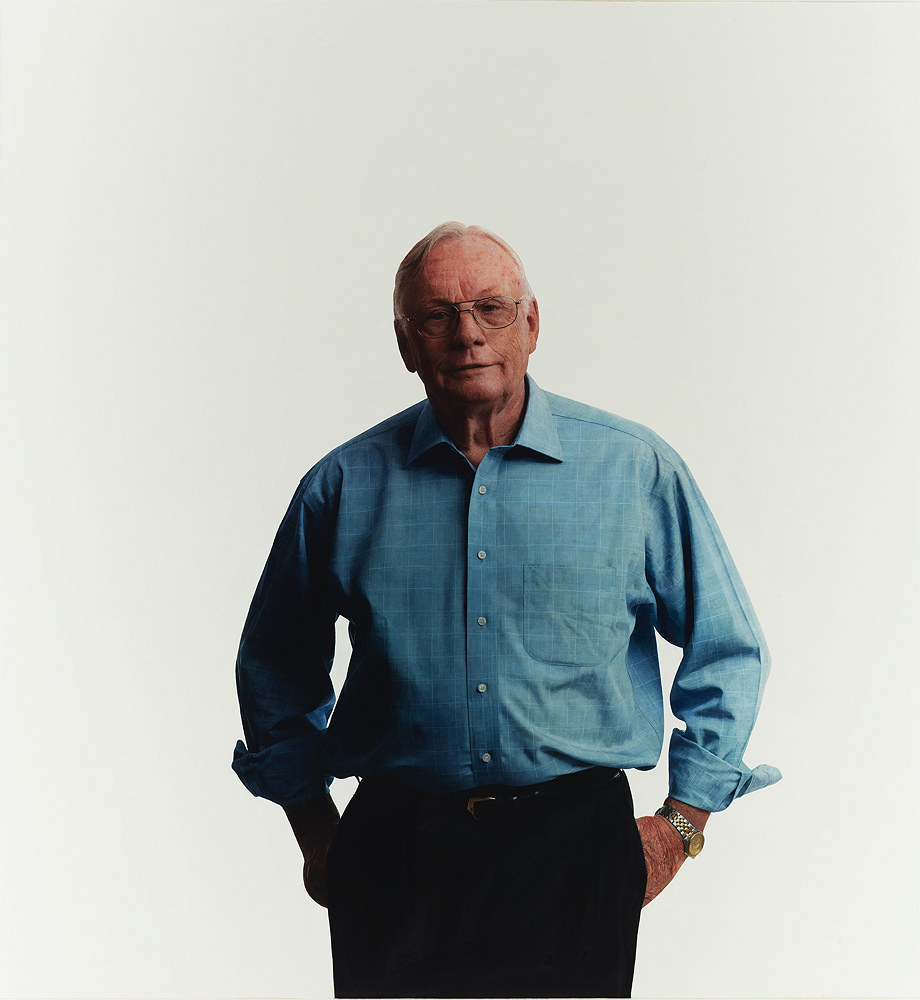 The Cumming portraits fill gaps in the museum’s collection—Morrison, legendary musician Mstislav Rostropovich, Mus.D. ’74—and depict American icons like Muhammad Ali and Neil Armstrong long after their heyday. “We often fix someone in time. Neil Armstrong, we only know him from 1969,” says Thompson. In the Robert McCurdy portrait, we see an older Armstrong, a private citizen in a plain work shirt.