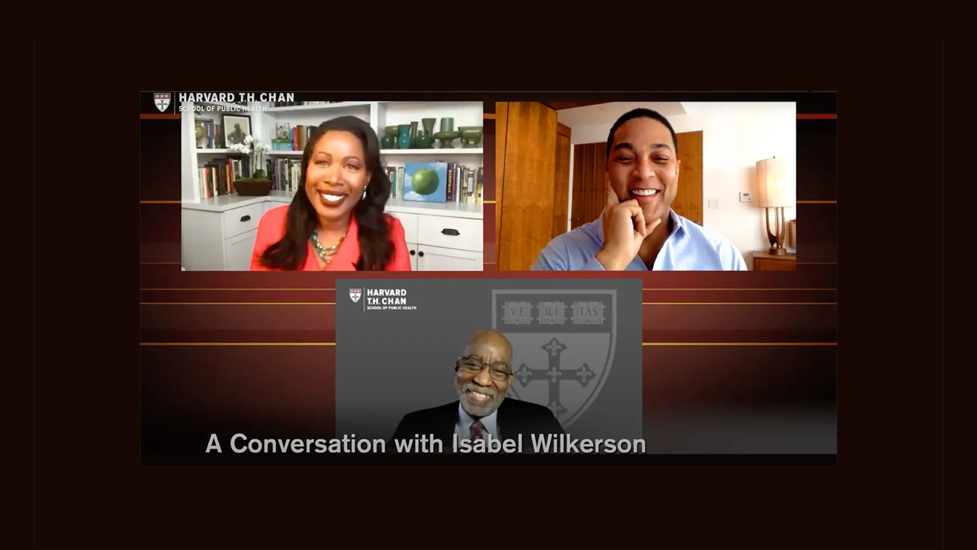In the first of a six-month series of public conversations focused on storytelling and public health—“powerful narratives for a healthier world,” as Michelle Williams, dean of the Harvard T.H. Chan School of Public Health, phrased it—Pulitzer Prize-winning journalist and author Isabel Wilkerson appeared (virtually) at Harvard this Monday to talk about the long legacy of oppression and racial hierarchy afflicting the nation’s well-being. The public event was organized jointly by the Harvard Chan School and the Nieman Foundation, and more than 1,000 viewers tuned in online.