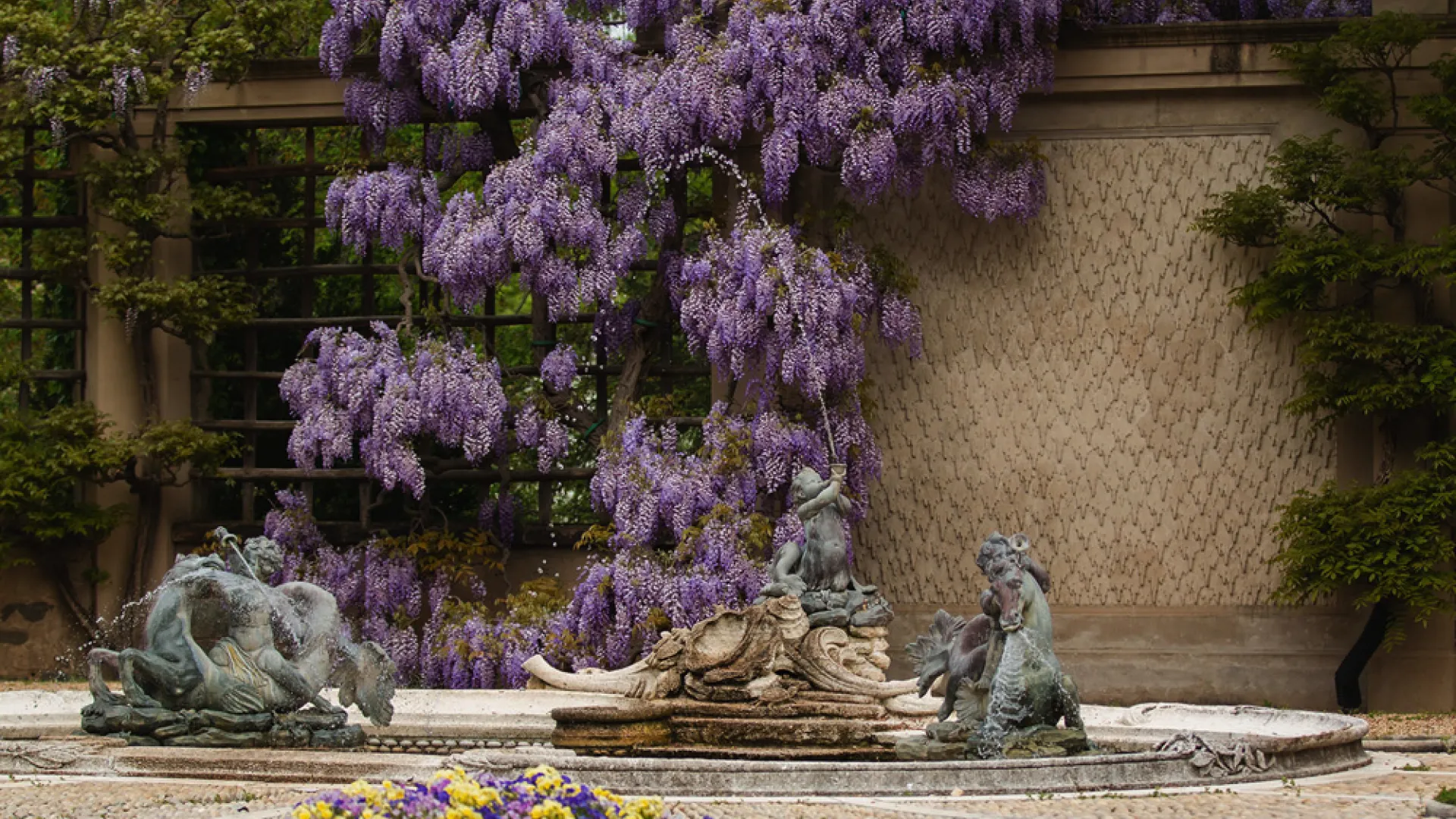 Box Walk also forms the eastern edge of the area cared for by the third crew, led by Walter Howell, who oversees the iconic Pebble Garden and contemplative Ellipse. The Pebble Garden, so called for the Havey-designed pebble mosaic at the center, once served as a tennis court but today is a favorite among guests for the wisteria that cascade along the walls in the springtime. Wisteria—and other plants like the English ivy that is prevalent in this part of the gardens—grow ferociously, especially in wet growing seasons, so pruning the vines and collecting seedpods later in the year to prevent further spread is a continual task. But there is a particular satisfaction to the frequent pruning and weeding for Howell, who often refers to the meditative and vital nature of plant maintenance. “Gardens, if they’re going to last for a hundred years, need gardeners,” he says. “We’re constantly balancing one plant against another to try and keep the artistic effect.”