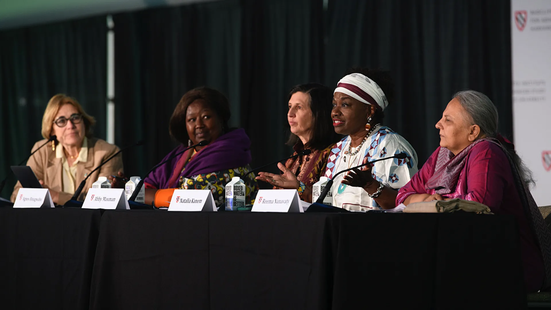 Bhabha, a human rights attorney and expert, led the conversation. In addition to being professor of the practice of health and human rights at the Harvard T.H. Chan School of Public Health, she is Smith Lecturer at Harvard Law School, an adjunct lecturer at the Harvard Kennedy School, and director of research at the Harvard FXB Center for Health and Human Rights. “I think it’s not an exaggeration to say that global health and its leadership is one of the key social and human rights issues of our time,” she said, introducing the morning’s event. The term “global,” she added, “encompasses the U.S. just as much as it encompasses what we often think of as the Global South.” And women, she said, “are central to this discussion.”