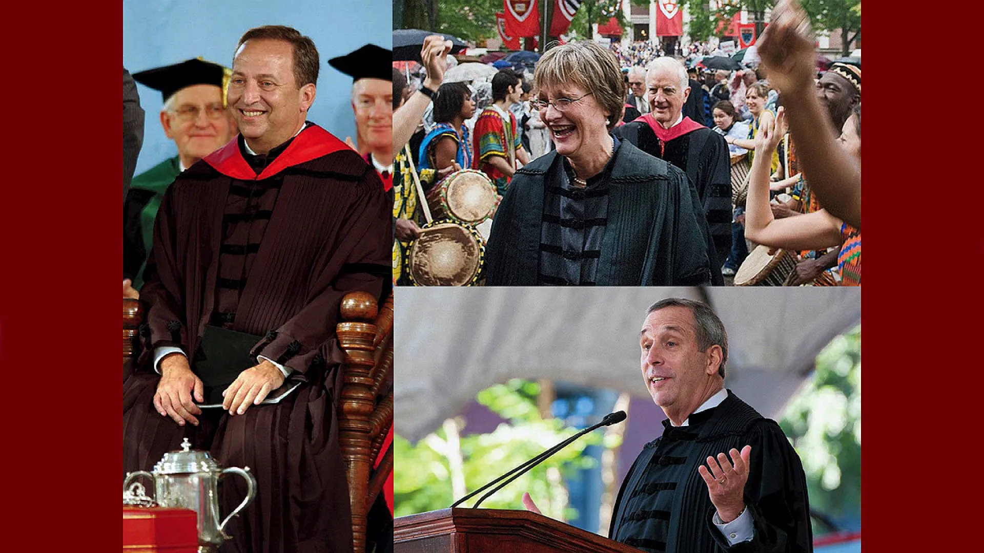 Commencements provide annual practice in uniting the Harvard community and celebrating its members, performing rituals, and parading around in funny costumes. Installations may appear similar, but are relatively infrequent (Claudine Gay’s, on September 29, launches just the thirtieth University president), more personal, one-off events. As such, they may signal new leaders’ interests and temperament. With benefit of hindsight, here are some of the messages sent during this millennium’s three prior ceremonies.