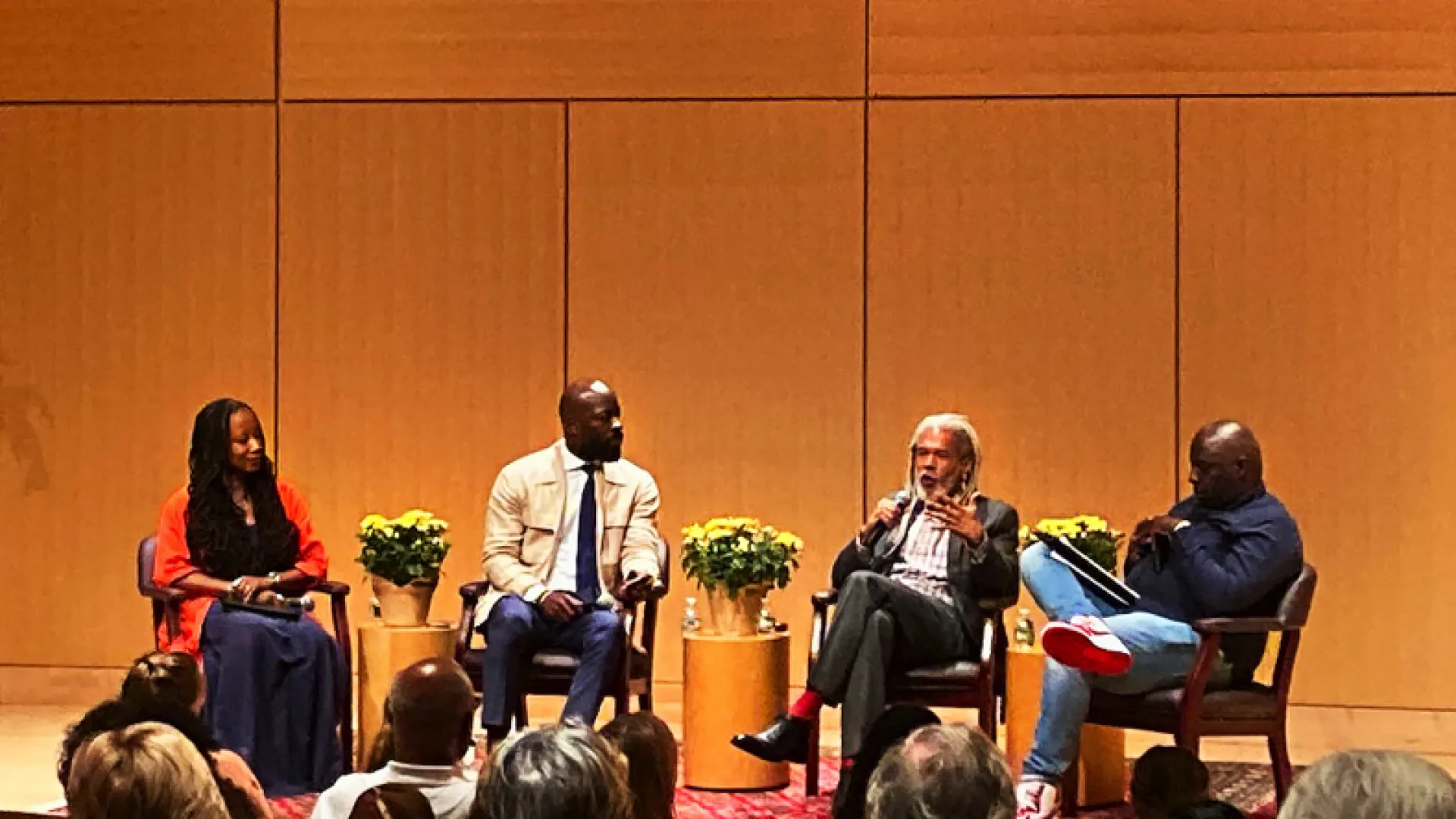 Afterward, an hourlong discussion was moderated by Tony Clark, co-founder and co-president of My Brother’s Keeper Cambridge, a nonprofit and advocacy organization serving people of color. Three panelists spoke: Vincent Brown, Warren professor of American history and professor of African and African American studies; Melissa Wood Bartholomew, lecturer and associate dean of diversity, inclusion, and belonging at the Harvard Divinity School; and Terrance S. Mitchell, a doctoral student at the Harvard Graduate School of Education (HGSE) and the former principal of a boys’ school in Cleveland, Ohio. Last year, Mitchell launched Camp Harvard, a summer leadership retreat for black boys on the University’s campus.