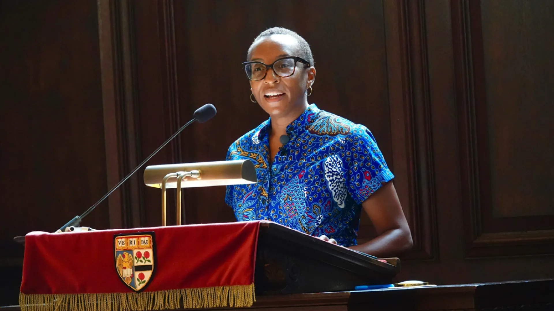 Speaking at Memorial Church’s semester-opening Morning Prayers today for the first time as Harvard’s president, Claudine Gay continued to tell members of the University community about their new leader. In so doing, she added to the personal details in her remarks last December 15, when her election was announced (portraying herself as a “first-year graduate student, moving into Haskins Hall, lugging the things that seemed most essential to my success at the time: a futon, a Mac Classic II, and a cast iron skillet for frying plantains”—a child of migrants now attending Harvard). She also built upon the lesson she shared with members of the class of 2027 at their convocation on September 4: about making sense of the name given a child by her parents, and then making a name for herself—as each new undergraduate has now begun to do.