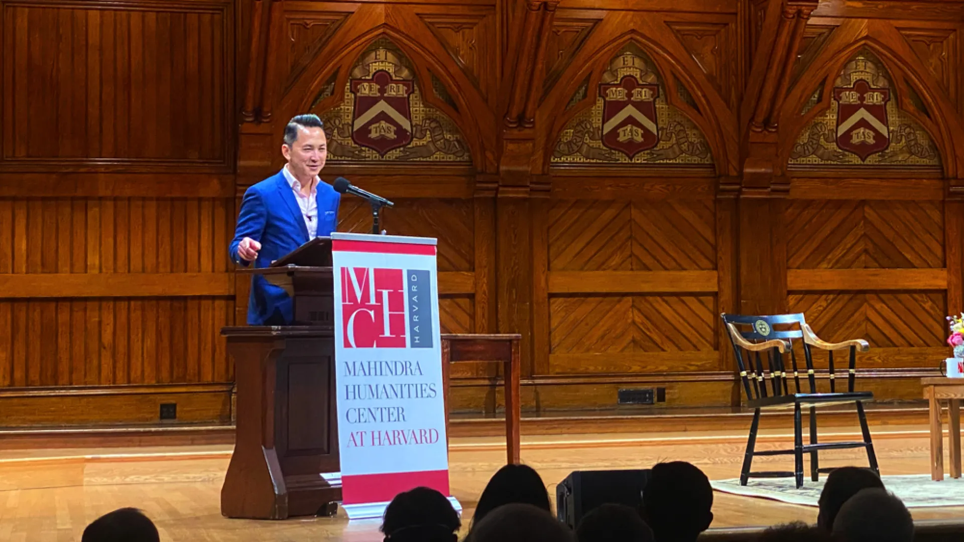 When Viet Thanh Nguyen, RF ’09, was 11, he spent his weekends in San Jose on his family’s red velour couch watching war movies. One day, he turned on Apocalypse Now—perhaps an odd choice for a child who fled Vietnam as a four-year-old during the war. Midway through the film, an American navy patrol boat pulls up to a sampan full of Vietnamese civilians. When one of them, a woman, makes a sudden movement, the Americans open fire. She survives the initial assault, but is killed when the captain shoots her in the chest. “I was split in two,” said Nguyen during his first Norton Lecture at Harvard last week. “Was I the American doing the killing, or the Vietnamese being killed?”