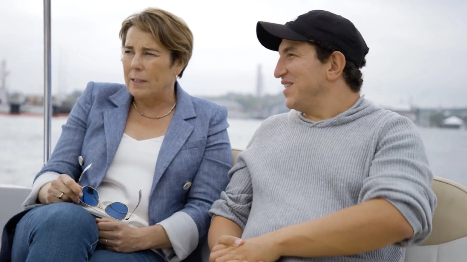 In the new season, Heffner travels from Boston to Savannah, Tucson, Baltimore, and beyond, speaking with national figures including Senator Raphael Warnock (D-Ga.) and Senator Jerry Moran (R-Kans.). In Massachusetts, he finds a fellow Harvard College graduate in Governor Healey, and even ropes in College friend Carl Malm ’12 for a cameo.