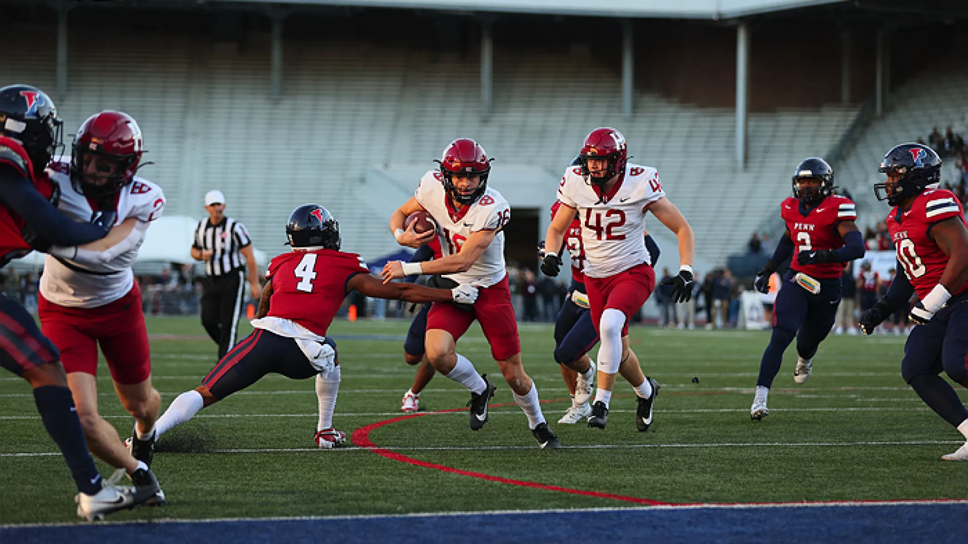 Fortunately, the Crimson has two starting quarterbacks, a No. 1 and a No. 1A. With the latter, DePrima, coolly directing a comeback, Harvard swiftly forged a 21-21 tie. Then, after again falling behind, the Crimson rallied and scored the last 10 points, the final three coming on a final-play field goal by untried rookie kicker Dylan Fingersh. The result was a stirring 31-28 victory, Harvard’s seventh straight and one that moved the Crimson (ranked No. 20 or No. 22 in the Football Championship Subdivision) to 8-1 overall and 5-1 in Ivy League play. Penn dropped to 4-5 overall and 2-4 in league games.