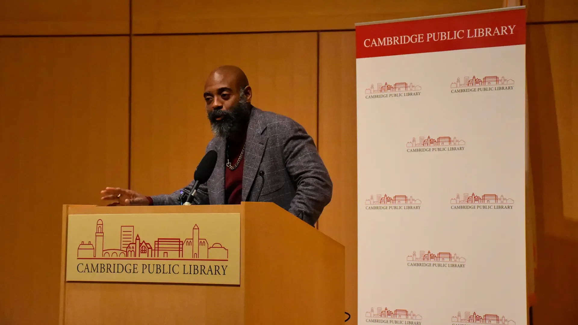“I’m going to tell you three stories,” said Reginald Dwayne Betts to listeners at the Cambridge Public Library Tuesday evening, at the start of remarks honoring Martin Luther King Jr. A Harvard visiting lecturer in English, Betts is a poet, practicing attorney, and the founder and CEO of Freedom Reads, an organization that builds libraries in prison cell blocks across the country—more than 300 so far. Betts is himself a former inmate: at 16, he went to prison for carjacking and spent almost nine years behind bars. That experience made him a writer and has shaped his life and work ever since. On the day he spoke, Harper Collins released a new commemorative edition of King’s Letter from a Birmingham Jail, with an afterword by Betts.