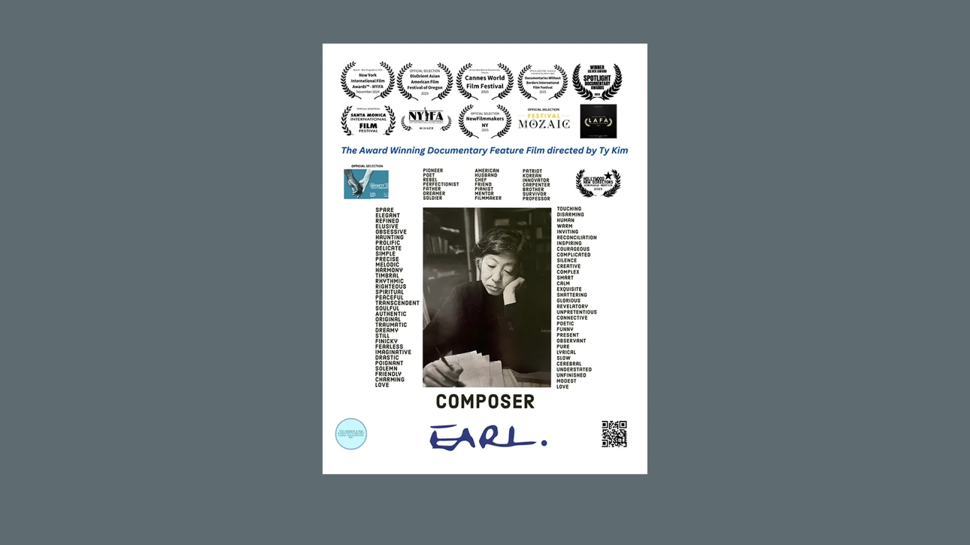 Directed by Ty Kim, M.B.A. ’00 (no relation to the composer), Earl. blends archival conversations with Kim, interviews with family and former students, and striking performances of his compositions—works that the New York Times once called “austere and dazzling.” Those performances are among the highlights of the film—though they weren’t easy to record, performers share: “His music is difficult, like Schubert’s,” former student Scott Yoo ’93 says in the film. “You feel kind of naked when you’re playing it. There’s really nowhere to hide.”