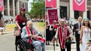 The ceremony included a Radcliffe chorus, and Black sang with the crowd and singers, proudly donning her red “Eldest Radcliffe College Alumna 2025” stole.