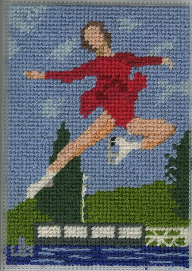 Bertagna enjoyed needlepoint as an evening hobby throughout much of his post-collegiate career as a hockey coach and commissioner. When he retired a few years ago, he embarked on a new ambitious project: recreating the most indelible figures in Boston sports history in brightly colored thread. He’s sewn Celtics great Bill Russell in his prime; Bruins defenseman Bobby Orr’s “flying goal” to clinch the 1970 Stanley Cup; Olympic figure skating gold medalist Tenley Albright ’57, M.D. ’61; Patriots kicker Adam Vinatieri’s field goal in the snow.
