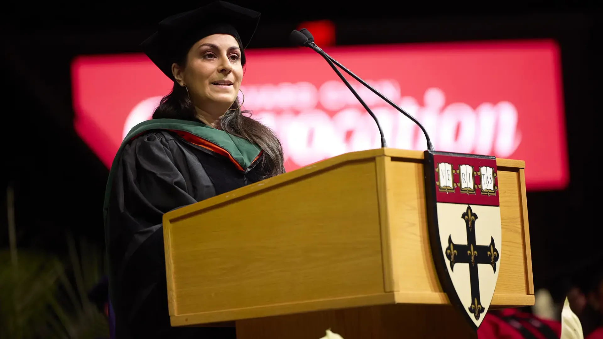 Gounder also touched on another recurring theme of the day: the threats to international students. Last week, the Trump administration declared it was revoking Harvard’s ability to enroll foreign students (Harvard filed suit to stop the order; an injunction is in place, with a preliminary hearing scheduled for Thursday). HSPH has one of Harvard’s most diverse student bodies: of the 615 students graduating this year, 40 percent come from abroad, representing 52 countries. “America has led the world in scientific progress for generations,” she said, “in large part because we have welcomed the best and the brightest from around the world to learn and work here, my parents among them.”