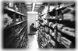 Wanted: better lighting in the Widener stacks and better carrels with better wiring. Why can't Widener be more like Langdell? In Langdell one may plug in one's laptop almost anywhere one can sit--at 854 places, to be precise--and have access to the Internet. Bottom: books like neither sun nor dry heat. In this 1968 photograph at Widener, an eighteenth-century English-language edition of Pierre Bayle's Dictionnaire historique et critique (1696) gets both barrels. Top photo, REX C. YOUNG '80; Bottom photo, CHRISTOPHER S. JOHNSON |