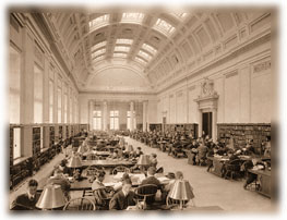 Not much has changed at Widener Library since these scholars beavered in the reading room in 1915, except that the building and its contents have inexorably deteriorated. One expects that of scholars, but hopes for rejuvenation in their support systems. HARVARD UNIVERSITY ARCHIVES |