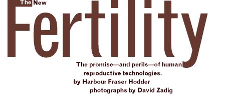 Annie Geoghegan, chief social worker for the Center for Reproductive Medicine at Brigham and Women's, looks at the issue developmentally. "We as women expect as a rite of passage to be able to have children when we choose," she says. "And when that gets interrupted, women feel defective." But Ruth Hubbard, professor of biology emerita and a longtime observer of the field, wonders, "How much has to do with the sense that, 'My gosh, I'm a healthy person. If cows can do this, why can't I?'" Shanti Fry, as president of Families with Children from China/New England, says she has observed equal distress in both sexes: "Men suffer just as much and just as deeply as women do."