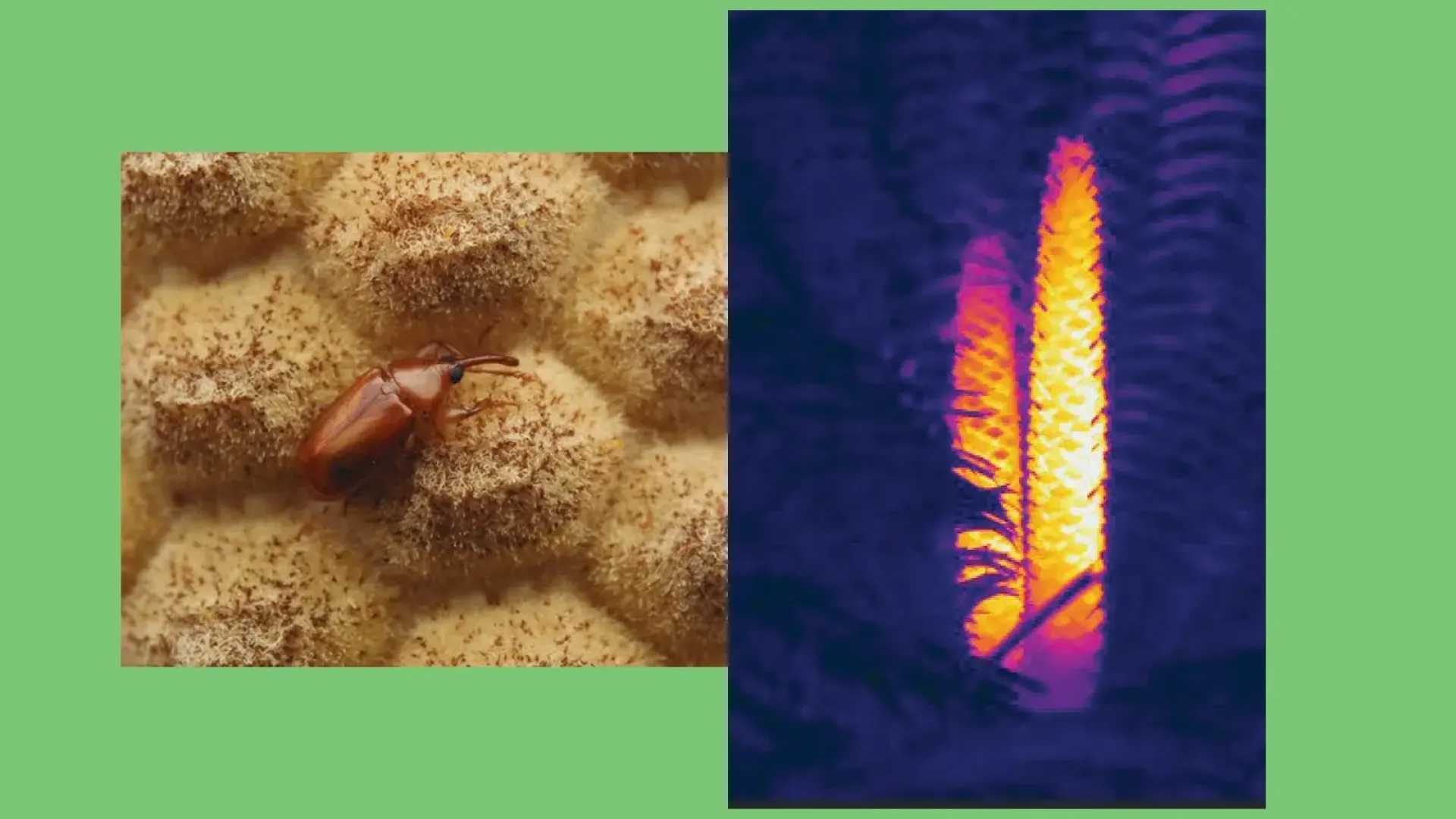 Plants usually attract pollinators using bright colors and scents, but some of the earliest plants use heat instead. A collaboration between professor of molecular and cellular biology Nicholas Bellono and Hessel professor of biology Naomi Pierce has shown that cycads, a division of cone-bearing plants that are ancient in evolutionary terms, warm their reproductive structures in daily cycles, releasing invisible infrared radiation that attracts beetle pollinators. Experiments showed that beetles are drawn to this heat even when color, scent, and touch are removed, proving that infrared radiation itself acts as a signal. The team also discovered that the cycad-feeding beetles have specialized sensory cells in their antennae that detect infrared heat, tuned precisely to the temperatures produced by their host plants. This heat-based signaling predates colorful flowers and likely played a key role in the earliest plant-pollinator relationships, long before bees and butterflies became dominant.