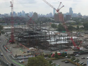 John Harvard , general contractor, was flat-out this summer—in all seriousness, perhaps the University’s busiest building season. Marquee projects include assembling the future home of much of the engineering and applied sciences faculty (shown above). …