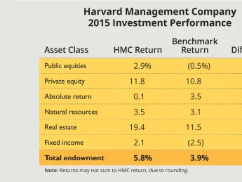 HIGHLIGHTS: The endowment’s value stood at $37.6 billion as of June 30, the end of fiscal year 2015—finally exceeding the nominal peak value (not adjusted for inflation) of $36.9 billion realized in fiscal year 2008, just before the financial crisis and …