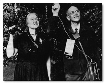 Philosopher and ornithologist Charles Hartshorne and his wife, Dorothy, recording bird songs at their home, 1961. |