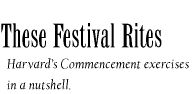 Eventually, almost everyone ends up on rigid plastic or folding wooden chairs, awaiting the "joyous peal" of the deep-toned bell of Memorial Church that signals the 10 o'clock start of the morning exercises. In 1997, more than 5,000 degrees will be conferred on members of the various graduating classes, assembled under the reds, blues, golds, and whites of the Harvard and Radcliffe flags that have graced the festivities since the University's 350th birthday celebration in 1986. The degree candidates are joined by three or four times that many guests. Despite the changes in scale and decoration, much in today's Commencement would be familiar to alumni of generations past, especially the academic robes and student "parts." Here is a brief guide to what the assembled company will witness.