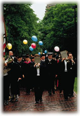 Commencement 1998 is only a step away, when the newest class joins its predecessors in the academic and alumni parades in what the Reverend Peter J. Gomes described in "Our Secular Sacrament" as a "succession of processions [extending] back in the memory's eye to that first modest Commencement of 1642...." From small roots in that Puritan college has grown the vision, the wisdom, and the joyous pageantry that keeps step with Commencement today.