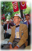 THE MASSACHUSETTS MOUNTIES The sheriffs of Middlesex and Suffolk Counties, who came to Commencement on horseback, let it be known that they wished to ride into Tercentenary Theatre at the head of the procession, but the Harvard powers-that-be refused, despite assurances that the horses were used to crowds. Moreover, marshal's aide Peter McKinney, former associate dean, who would have marched behind the horses, allegedly refused to carry a push-broom. At 9:15, when the Commencement caller summoned the president's division to the line of march, the worthies fell in briefly behind the mounted sheriffs, prompting the caller to announce, "The president's division is now advancing, led by the cavalry." But the sheriffs, dutifully, soon dismounted. They evidently had so enjoyed their equestrian outing that they kept the horses on hand and rode them here and there in the Old Yard, aimlessly but harmlessly, at lunchtime. During the morning exercises, President Rudenstine called upon Middlesex sheriff James DiPaola, a ham, to intervene when degree candidates from the Business School cheered themselves excessively. The sheriff rose from his seat at the edge of the stage, strode imperiously forward, and demanded order, which did indeed ensue. GREENSPAN THE JOKER