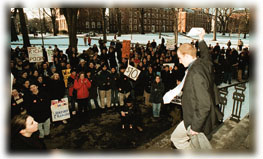 Like a handful of other universities challenged by student activists, Harvard has moved toward requiring higher labor standards from manufacturers licensed to produce goods bearing its name. On March 9, the same day a large student protest rally took place, the University endorsed a policy of "full disclosure" that would obligate manufacturers to reveal the locations of their factories--something companies have traditionally been reluctant to do in the highly competitive apparel industry. Harvard also indicated that it is discussing with other universities the possible launch of a yearlong independent monitoring project that would gather information about factory conditions.