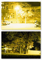 ![]() Harvard's exterior lighting gets both raves and hisses from dark-sky advocates. The Law School's Austin Hall (top) glares brightly, while Radcliffe Quad near Hilles Library uses lights with full-cutoff fixtures. |