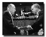 At the Nobel ceremonies in Stockholm in December, C. Lowell Harriss '34 received from King Carl XVI Gustaf the prize in economics awarded his longtime friend and Columbia University colleague William Vickrey, who died days after winning the prize. Vickrey's widow asked Harriss to stand in. Laureate David M. Lee '52 taught his regular 8 a.m. undergraduate class at Cornell University after learning he would share the 1996 prize in physics, but spent the period describing his discovery of superfluid helium-3.