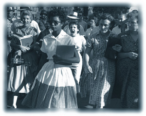 How far have we come? In September 1957, hecklers taunt Elizabeth Eckford, one of nine black students whose admission to Little Rock's Central High School had been ordered by a federal district judge.Photograph by UPI/Corbis-Bettmann