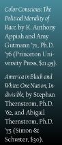 Beyond their timeliness, are these books helpful? Their contributions are of a very different sort. Kwame Anthony Appiah, professor of Afro-American studies and of philosophy at Harvard, and Amy Gutmann, Rockefeller University Professor at Princeton, offer separate but complementary essays, each a deeply reasoned, conceptually rich account of race and color as they shape identity and suffuse civic discourse. There are also prescriptions congenial to those of us who share their commitment to democratic deliberation and equality, and to the "substantive" view of justice-as-fairness implied by that commitment. Their enterprise is one of ideas, which they hope will influence broader political discussion. And political discourse will in turn shape our ideas about color--one of the points in an elegant introductory essay by my Harvard Law School colleague David B. Wilkins. "Our success in grappling with these complex questions," he writes at one point, "ultimately depends upon the strength of our commitment to democratic values in general and reasoned deliberation in particular."