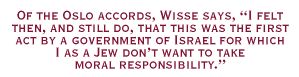 And the Oslo accords? "Like an end to a part of my life. I felt then, and still do, that this was the first act by a government of Israel for which I as a Jew don't want to take moral responsibility. Here, after all that has happened, you hear Jews saying, 'So land, what's land?' Well, what do we want? It was not only the giving up of land that I objected to, but the pretense that this could advance the cause of peace. In fact, no people has ever armed its enemy with the expectation of gaining security. One would do anything possible to free Israelis from having to stand at perpetual alert. But apparently there is no in-between for the Jews. Maybe in 200 years, when--let us hope--the Jewish state is completely accepted, then we Jews can relax our guard."