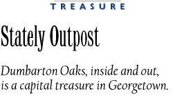 Agents of the major allied powers gathered at Dumbarton Oaks in the summer of 1944 to plan an international peacekeeping institution, the United Nations. Visitors today often come to look at the garden. It is one of the finest gardens in the country, an enduring work of art created over a 20-year period by the landscape architect Beatrix Farrand. Terraced gardens cleverly negotiate the awkwardly sloping site. Outdoor rooms of flowering trees, restrained under-plantings, rich stonework, and sculptured ornament cover 10 acres in earthly delight. "It is the chambered nautilus of gardens," wrote Eleanor M. McPeck, M.L.A. '74, former Dumbarton Oaks Garden Fellow, "suggesting at every turn deeper levels of meaning and experience." But come out of the garden and enter the house, a nineteenth-century, Federal-style mansion in the Georgetown section of Washington, D.C., the former residence of Mildred and Robert Woods Bliss '00. In 1940 they gave Dum-barton Oaks to Harvard to be a research center. It came furnished with a collection of Byzantine art that ranks among the most important in the world. Although the trove includes mosaic pavements from Antioch, it consists mainly of small, luxurious objects of imperial, ecclesiastical, or secular persuasion, dating from the fourth to the fifteenth centuries. In 1963 Philip Johnson '27, B.Arch. '43, designed a striking new wing for the house, to house Mr. Bliss's pre-Columbian sculpture, textiles, pottery, and gold ornaments. Mrs. Bliss gave the center her rare books relating to the history of gardens. All this amounts to a vast resource, and resident scholars are appointed each year to make serious use of it. The collections and gardens are open also to the public. If we could linger after hours on a spring afternoon, we might discover a Dumbarton Oaks fellow in the great, graceful, gratifying outdoor pool, all set about with white azaleas, leading the fairy-tale academic life. |