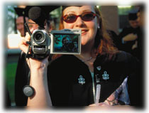 Dueling lenses. Jessica Tardy '99, of Pforzheimer House and Palmyra, Maine, videotapes a press photographer.