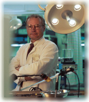 As associate professor of surgery Arthur Lage, D.V.M., walks through the doors of Harvard Medical School's Alpert Building, people recognize him, smile, and let us pass without showing identification. He is director of the Center for Animal Resources and Comparative Medicine and the Center for Minimally Invasive Surgery at the medical school and director of the Office of Animal Resources for the Faculty of Arts and Sciences as well. We take an elevator down to a basement, where Lage swipes a card through a reader, unlocking a door to a hallway, where he speaks into a phone. A minute later, a young man clad in blue scrubs opens the door. Lage explains that he's bringing a reporter in for a tour and that we'll need keys to see certain rooms. The young man hands over the keys and closes the door.