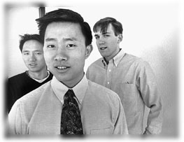 The idea for Crimson Solutions came to Chao during a summer-job hunt. While researching possible employers at OCS, he had to run out to get change for the photocopier. When he returned, the office had closed, and by next day, someone had ripped out the information he wanted to copy. "I was really frustrated. There's got to be a better way of doing it, I thought," says Chao. The Internet offered an obvious solution: "If we put this on the Web, everybody would have access to it 24 hours a day." Chao approached OCS, they drew up a contract for $3,000, and he spent the summer programming with his blockmates. In the fall, they expanded the service to other schools, including Brown and Wellesley.